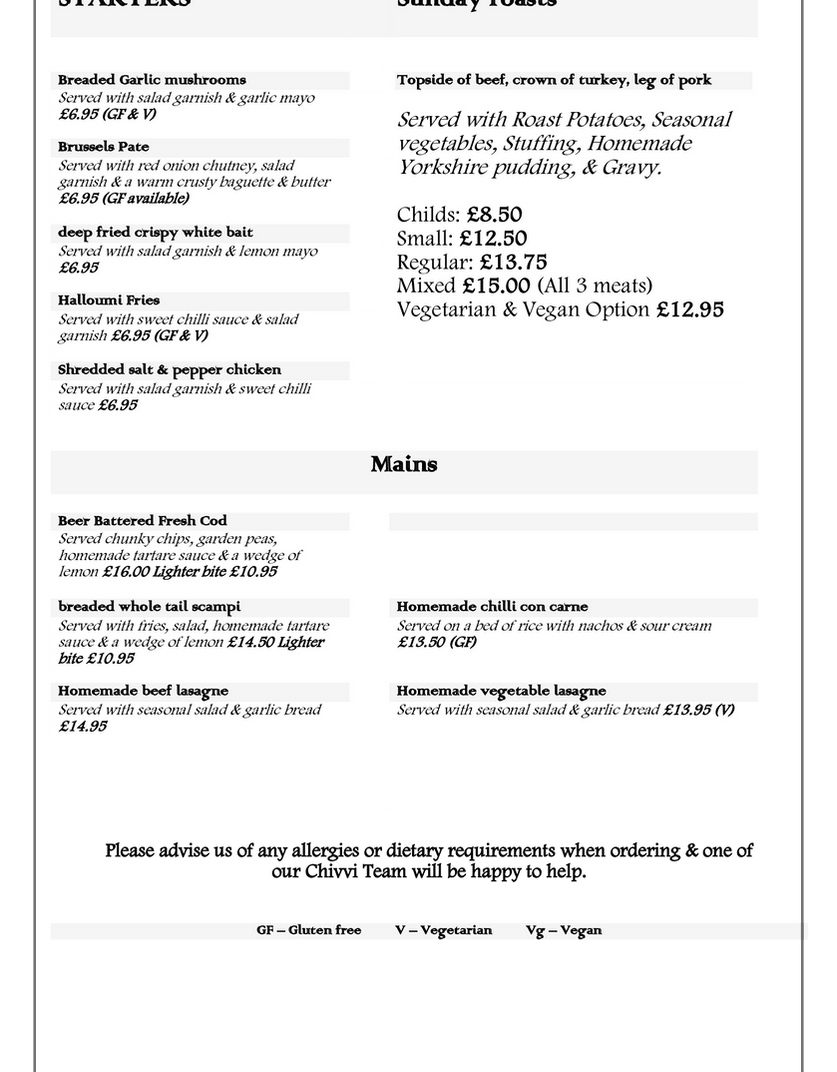 Lasts Orders for food are 15 Minutes before the kitchen is due to close.